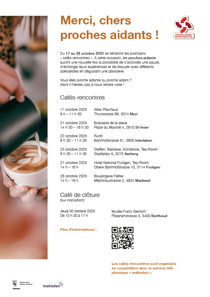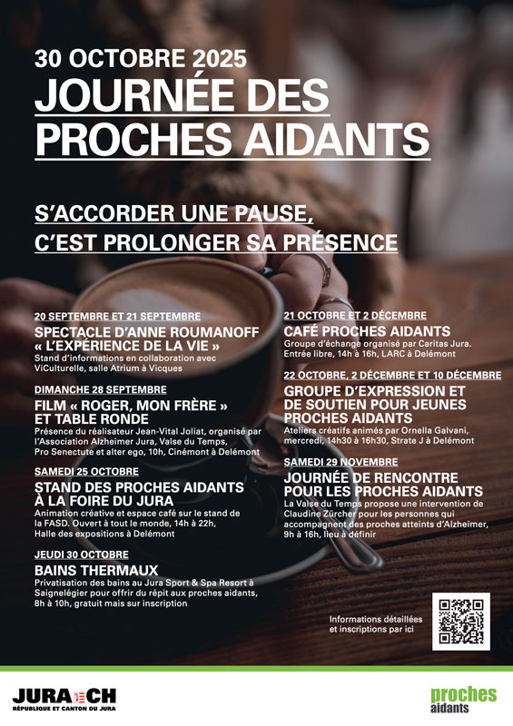 | Exposition de livres sur le thème des proches aidants du 20.10 au 3.11.2025 | Delémont, Jura, Saignelégier, Saint-Ursanne | 20.10.25 | |